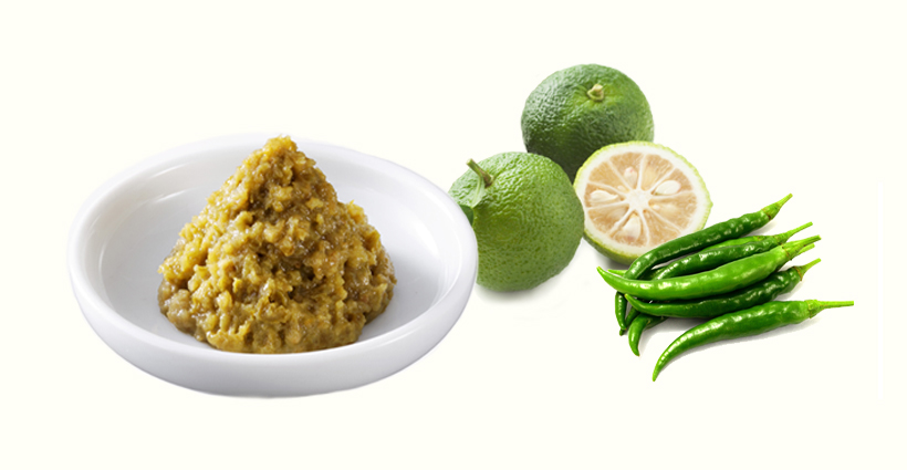 青柚子・青唐辛子の爽やかな香りとすっきりとした辛さが特長。鍋やみそ汁などに薬味として少し加えるだけで、いつもの料理がひと味違ったおいしさになります。